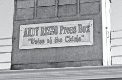 To honor Rizzo, the Canarsie football Chiefs honored him with a banner—which is affixed to the press booth—a few years ago, for his time behind the mic. But someone mistakenly removed it, the current administration said, and quickly replaced it when Rizzo requested, much to his delight, he noted.