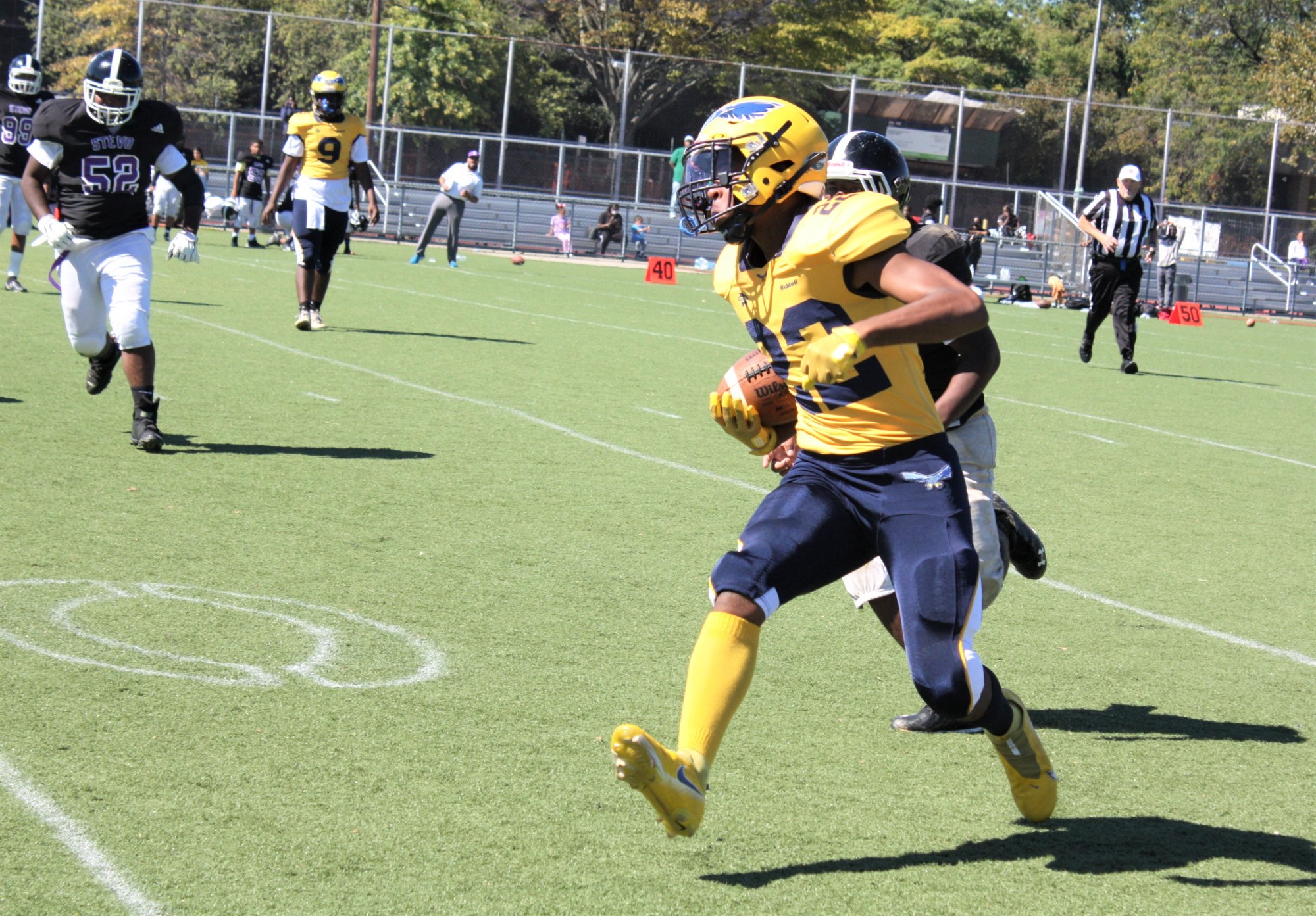 It worked, as the Falcons ‘ defense shifted into lockdown mode against the run, while the offense went to work scoring five touchdowns in their 42-0 lopsided PSAL Cup Conference victory over host Adlai Stevenson (0-2) Saturday on a sun-drenched afternoon in the Bronx.