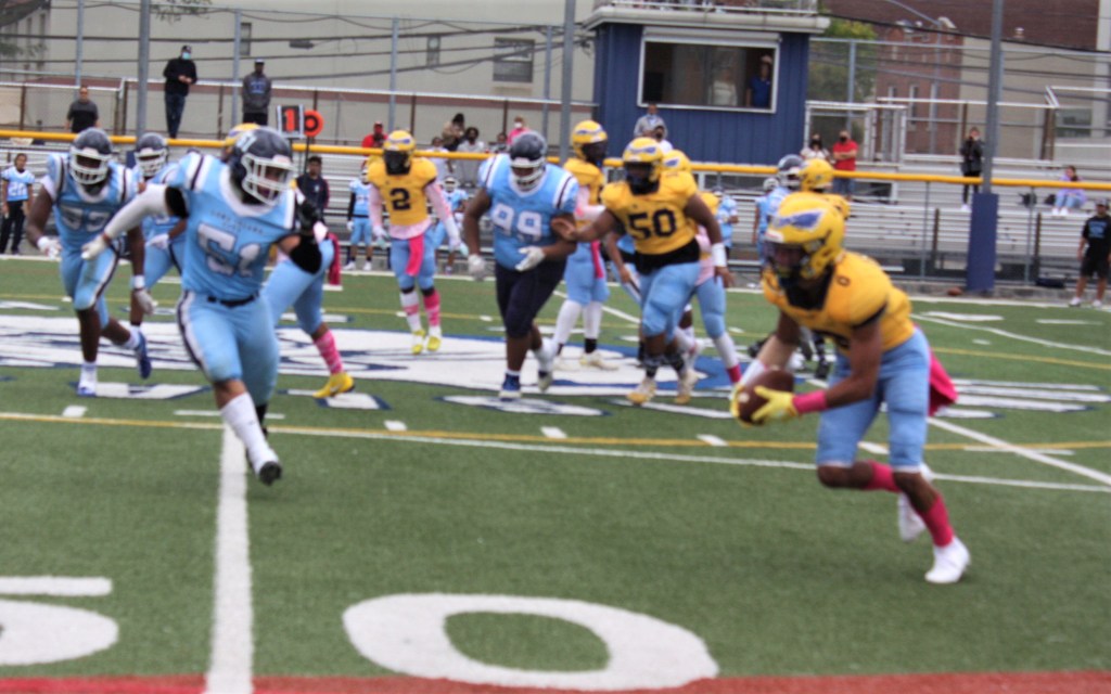 Things were clicking on all cylinders for August Martin High School Football, as standout two-way player Isaiah Allen scored five touchdowns in almost every way possible, while the rest of the Falcons played stellar ball en route to a 62-0 lopsided PSAL Bowl Conference non-league victory over host Long Island City (2-2) Saturday afternoon.