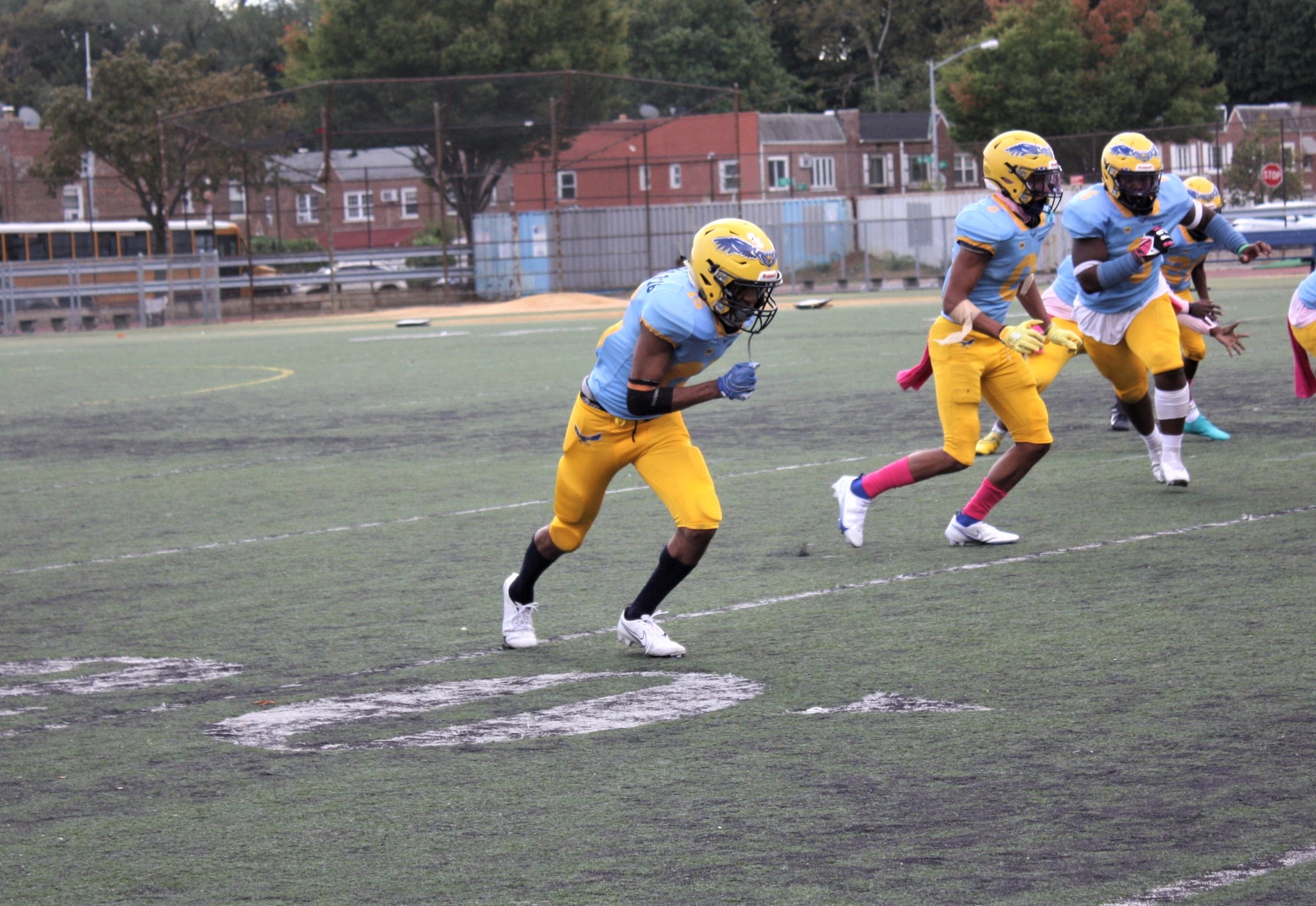 The rest, as they say, was academic, as the Falcons, spurred by Davis’ five-touchdown performance, played impressive overall football en route to a 44-16 PSAL Cup Conference victory over the Panthers Sunday at John Adams High School field in Ozone Park, Queens.