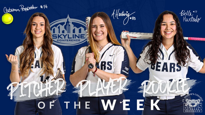It was a banner week for Division III St. Joesph’s College Brooklyn softball team, as it posted a 4-0 week as well as claiming three honors: the Skyline Conference Pitcher (Autumn Poppett), Player (Ashleigh Hartwig) and Rookie of the Week (Bella Hurtado) accolades.