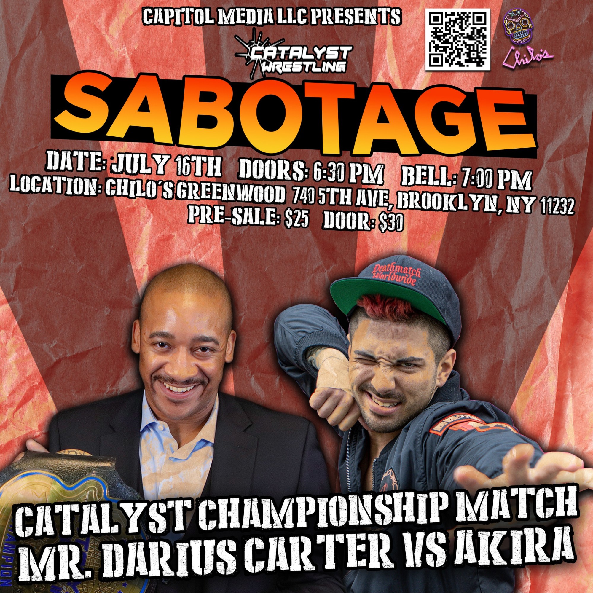 Catalyst Wrestling makes its return to Brooklyn, N.Y., with its electrifying Sabotage card on Saturday, July 16th at 7:00 p.m. at Chilo’s Greenwood, an authentic Mexican restaurant (740 5th Ave.) in Park Slope.