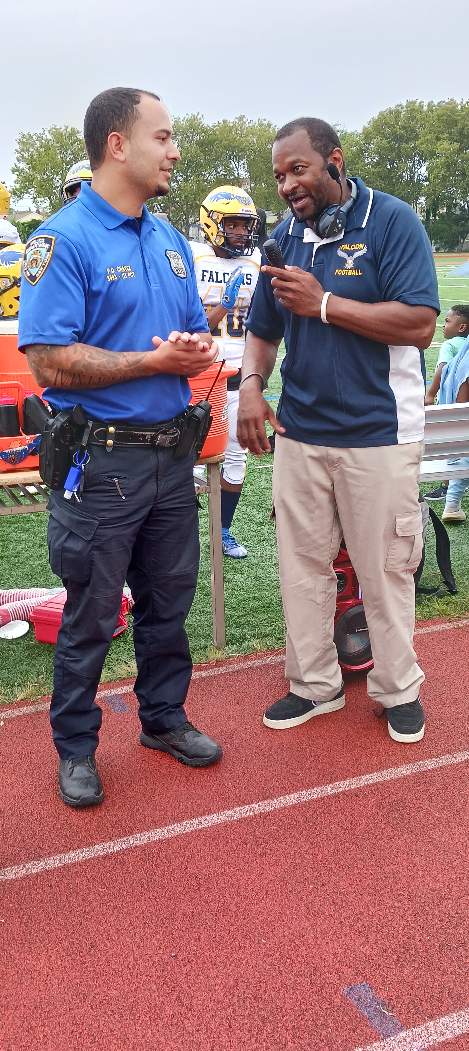 Not to get lost in the shuffle of the football game, at halftime, the Falcons, along with her mother, Cherone Coleman, in attendance, honored firefighters Pena, John Sommerville and Jimmy Sabin from Ladder 135/Engine 302, as well as a local police officer.