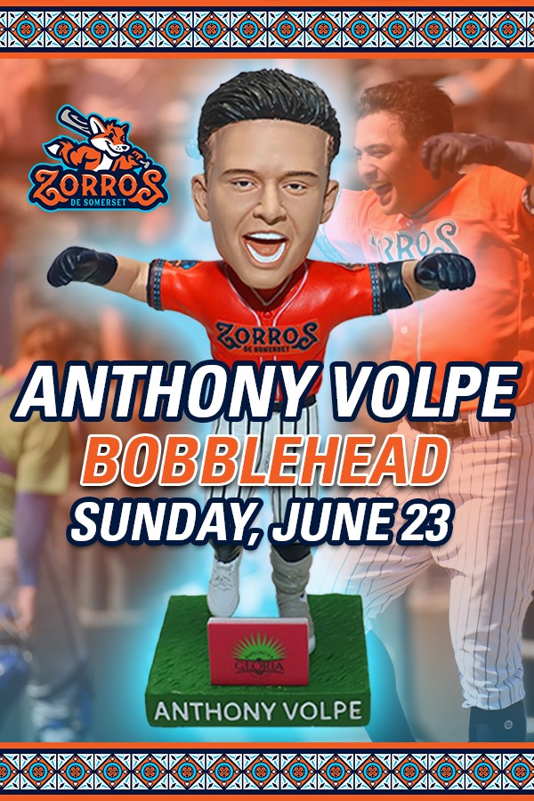 Next, on Sunday, June 23rd, at 1:05 p.m., the Patriots will dole out Anthony Volpe Zorros Bobbleheads to the first 2,000 adults in attendance.