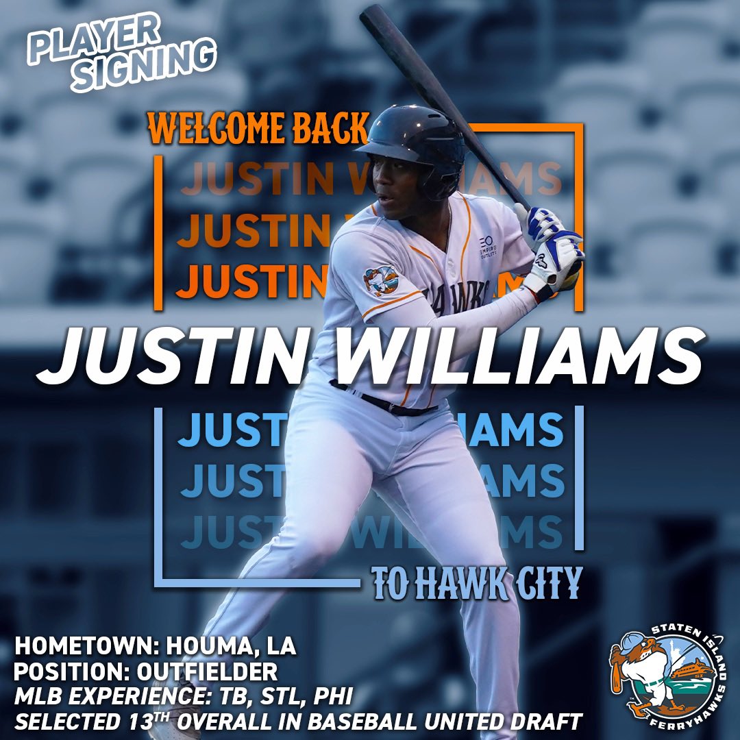 The Staten Island FerryHawks have re-signed ex-MLB outfielder Justin Williams to a contract for the 2024 Atlantic League season, today the team announced via X.