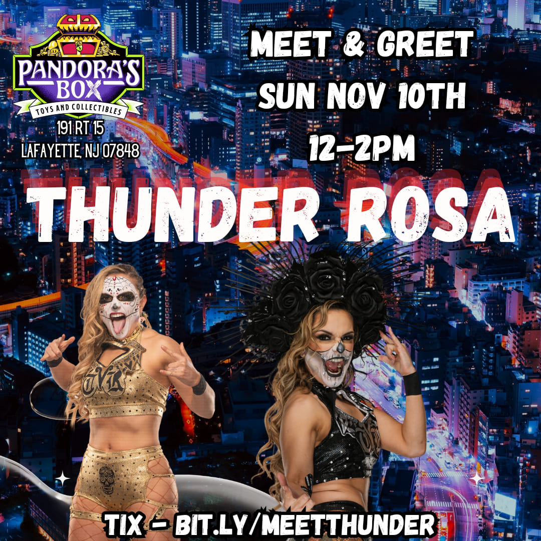 On Sunday, November 10th, from noon to 2:00 p.m., Rosa (real name Melisa Cervantes) of All Elite Wrestling (AEW) and former Lucha Underground and ROH star will be at Pandora’s Box Toys & Collectibles in (191 Route 15) Lafayette, N.J., for a meet-and-greet event.