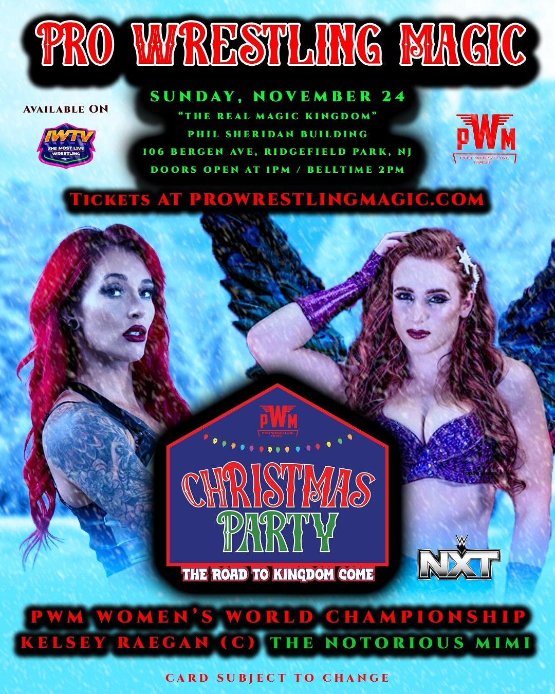 On Sunday, November 24, 2024, Pro Wrestling Magic (PWM) is set to hold its high-octane fight festival Christmas Party: Road to Kingdom Come card at the “Real Magic Kingdom” Phil Sheridan Building (106 Bergen Ave., Ridgefield Park, N.J.).