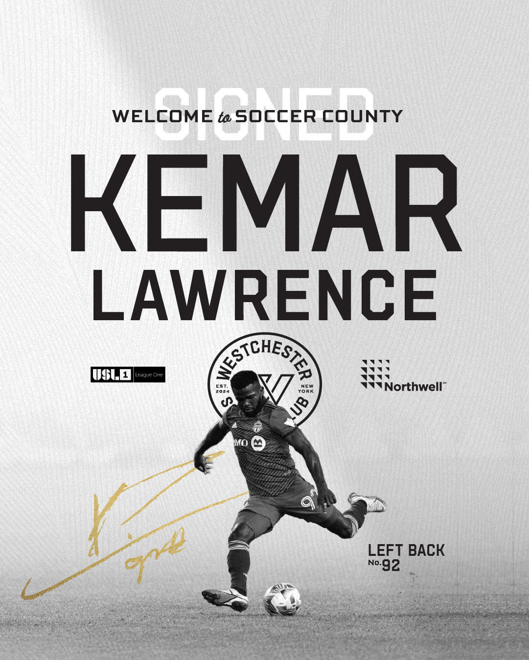 The Westchester Soccer Club (United Soccer League League One) today announced the monumental signing of its first-ever player, bringing former Major League Soccer (MLS) and Jamaican International wing back Kemar Lawrence to the team.