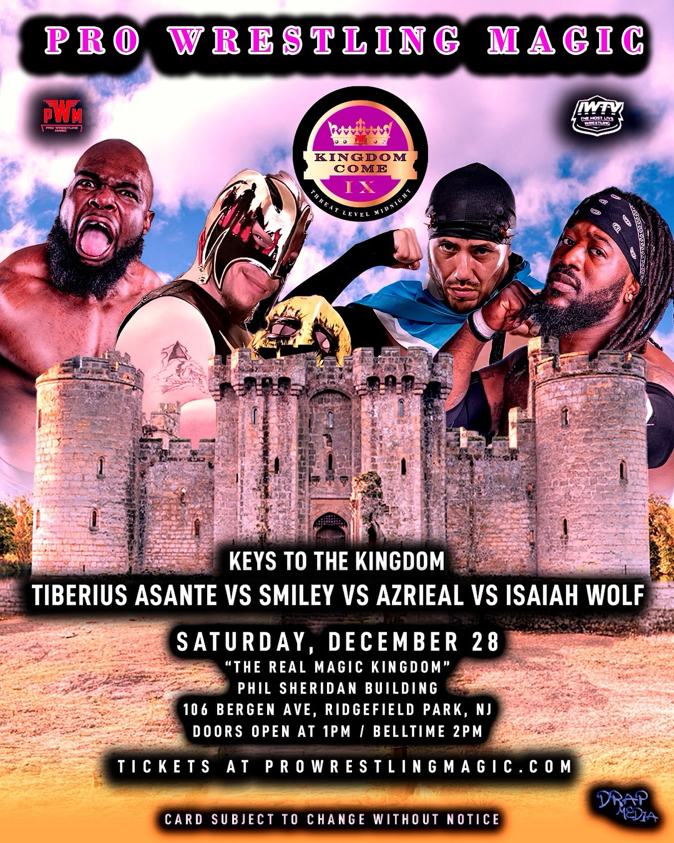 Pro Wrestling Magic’s (PWM) final event of the year is set to go off with high-octane bang on Saturday, December 28th at 2:00 p.m. at its Keys to Kingdom IV card at the Phil Sheridan Building (106 Bergan Ave., Ridgefield Park N.J).