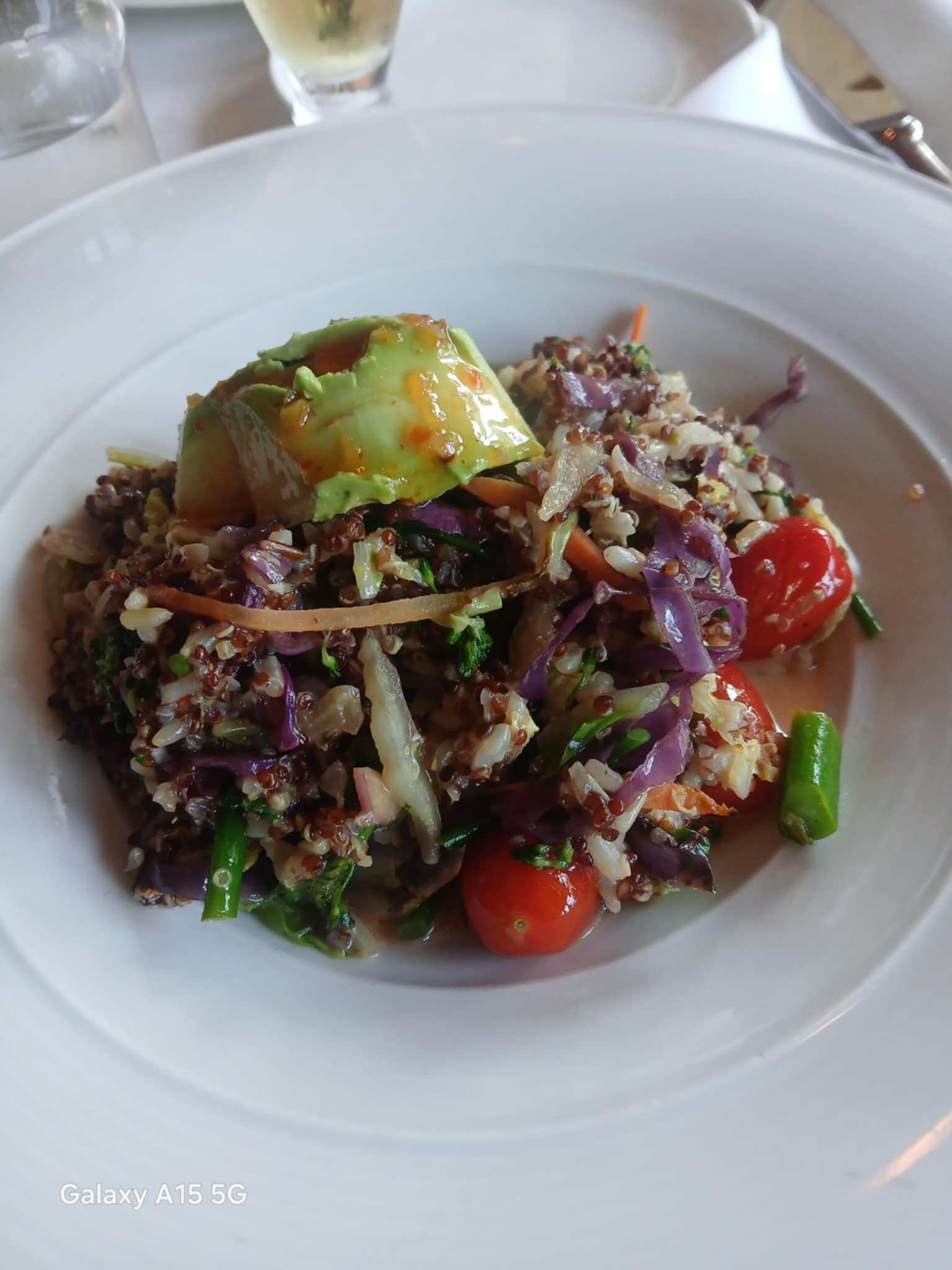 As for its fare and brews, I started off with a local Ghost Pony draft from Trap Rock Brewery and Restaurant (Helles-style lager brewed with German malt and hops, light and crisp and easy to sip) located in Berkeley Heights, N.J. It paired well, not that I was trying, with the vegetarian Grain Bowl ($18.95) — wild rice medley, quinoa, avocado, roasted broccoli, heirloom cherry tomatoes, snow and snap peas. It was healthy and delicious, not to mention appetite filling.