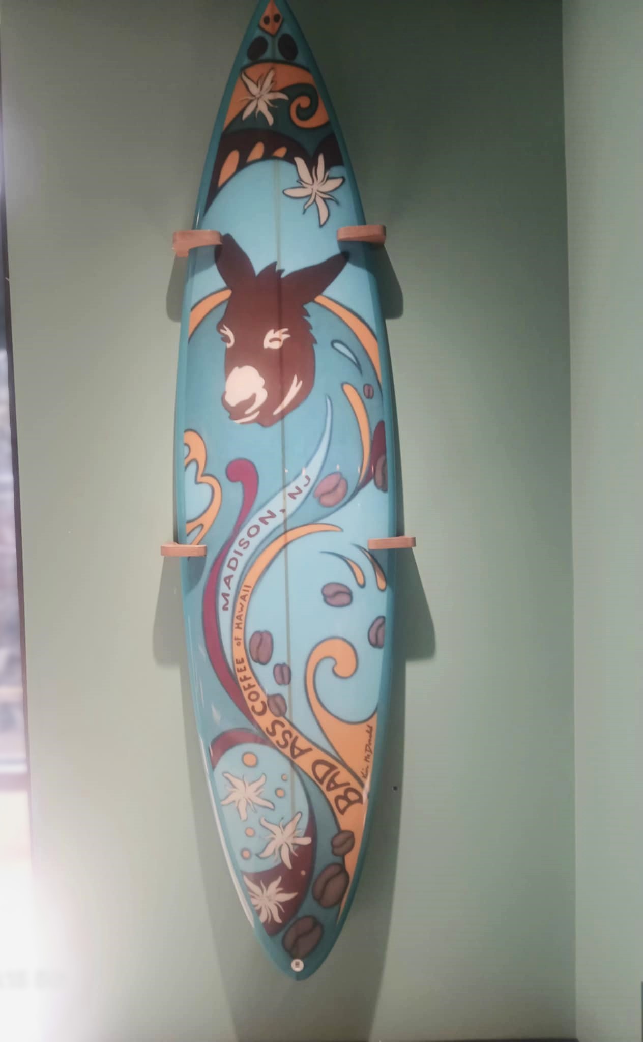 Donned in donkey-inspired decor–adorable donkey photos and artwork, surfboards, and blue and wooden brown colors throughout–Bad Ass Coffee Madison captures the mood to help you enjoy a quality cup of java anytime of the day, just like I do.