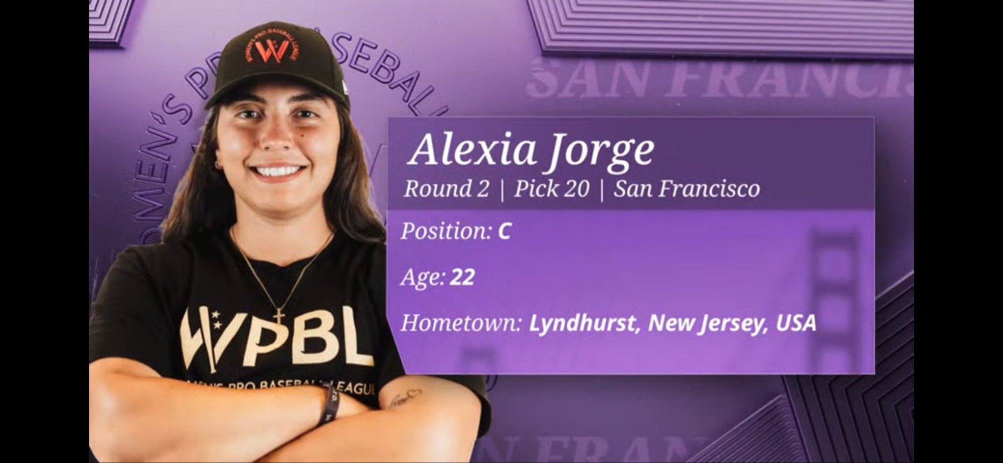 Alexia Jorge, who played baseball at the Division III Saint Elizabeth University in New Jersey, has been selected in the second round, No. 20 overall, of the Women’s inaugural Professional Baseball League (WPBL) Draft by San Francisco on Thursday.