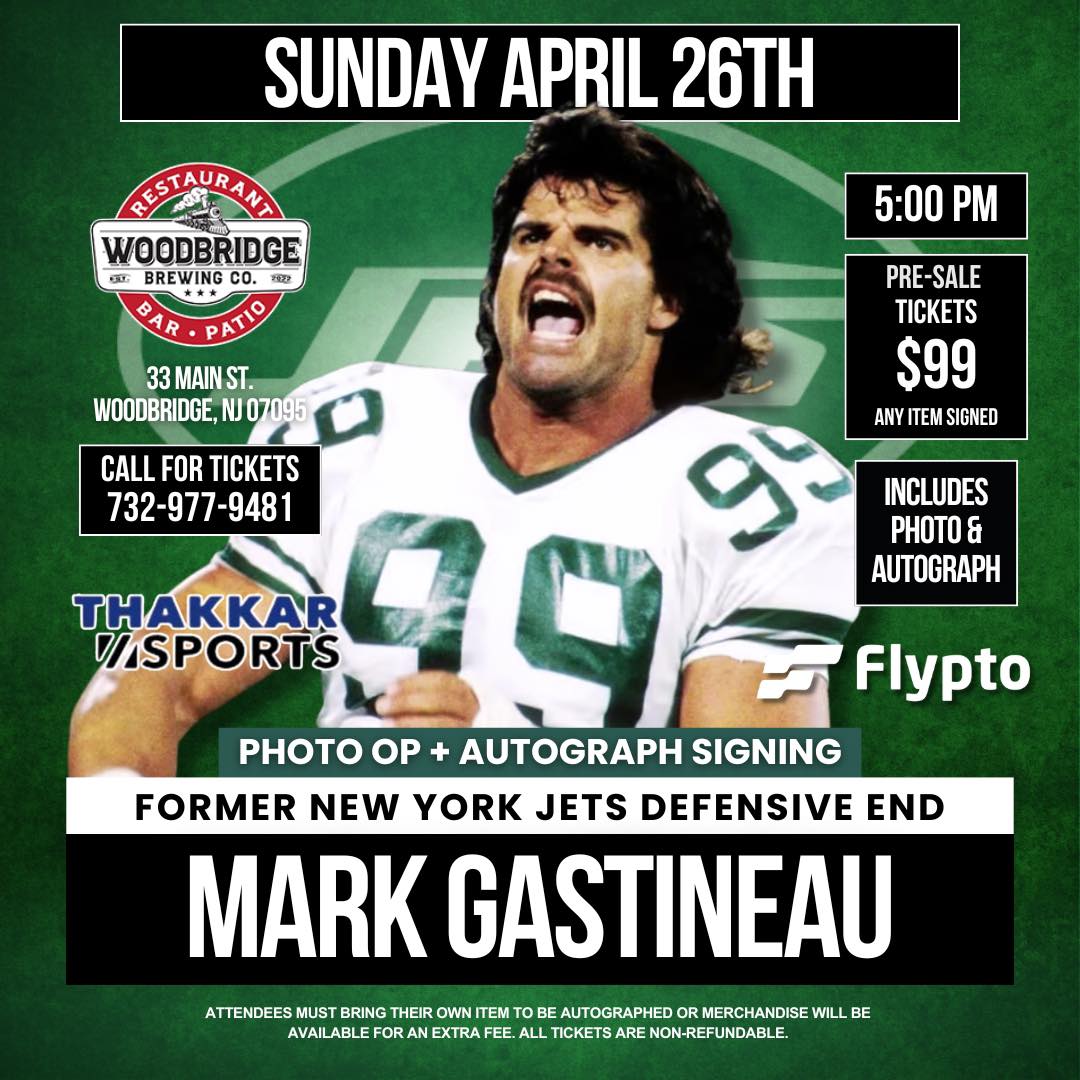 On Sunday, Aprile 26th, at 5:00 p.m., one of the New York Jets’ greatest pass rushers, Mark Gastineau, is heading to Woodbridge Brewing Co. (33 Main Street, Woodbridge, N.J.) for a special meet-and-greet event.