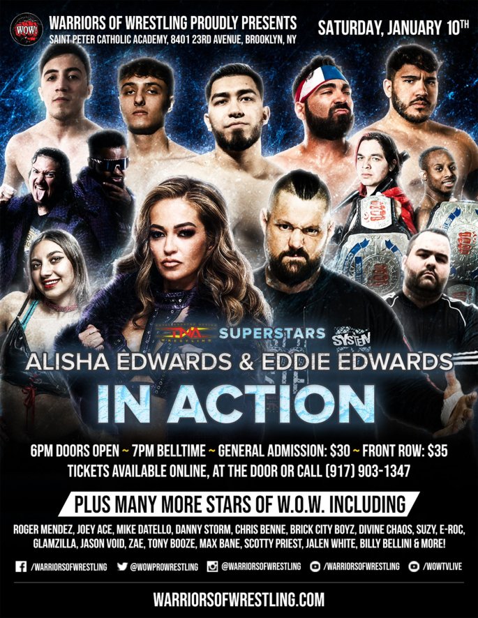 Warriors of Wrestling presents “New Beginnings” on January 10th at Saint Peter Catholic Academy featuring TNA stars Eddie and Alisha Edwards, champion Mike Datello, and various wrestlers. Tickets start at $30.
