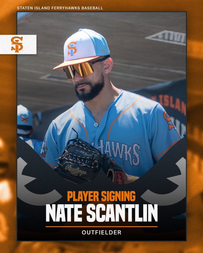 The Staten Island FerryHawks signed outfielder Nate Scantlin for the 2025 season. Scantlin, 26, had a successful 2024, hitting .273 with 127 hits and 30 stolen bases.
