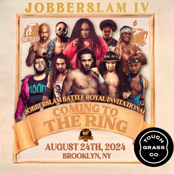 Battle Club Pro and Jobber Tears Podcast present JobberSlam IV Coming to the Ring at Brooklyn Stuy Dome. Featuring intense matches including a steel cage showdown, tag team championship, and heated rivalries in a thrilling night of wrestling action.