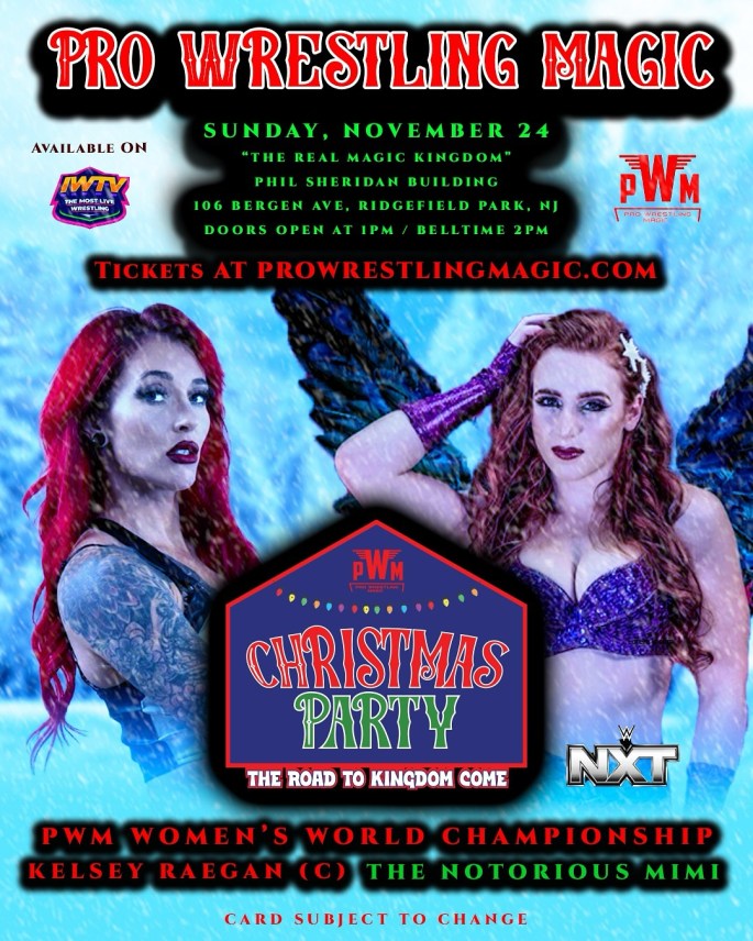 Pro Wrestling Magic's Christmas Party: Road to Kingdom Come event on November 24, 2024, features exciting matches, including bouts with champions like Alex Reiman and Kelsey Raegan, alongside former WWE stars.